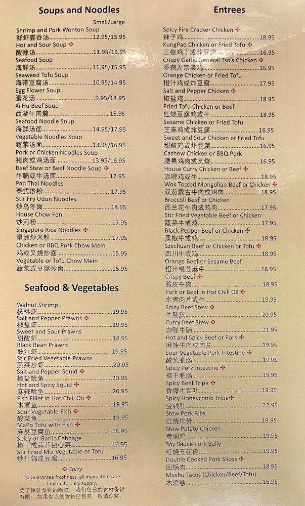 Soups like Hot and Sour or Seafood Noodle are comforting and flavorful. For a lighter option, the vegetables and seafood selections offer something for every palate. Additionally, I recommend exploring the chef's specials. Dishes like the delectable Xiao Long Bao guarantee a memorable culinary experience.